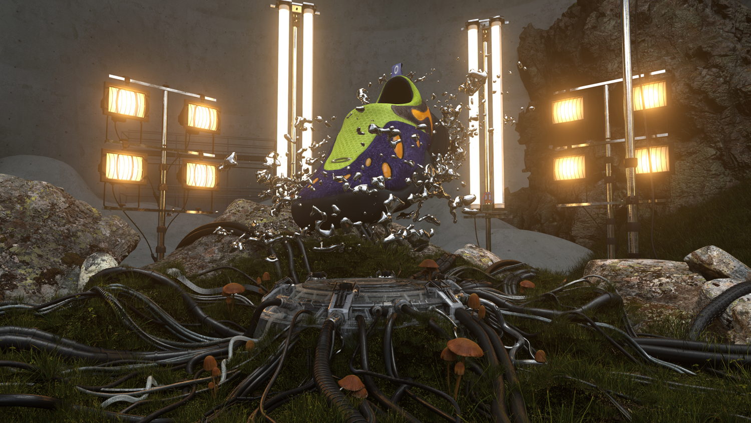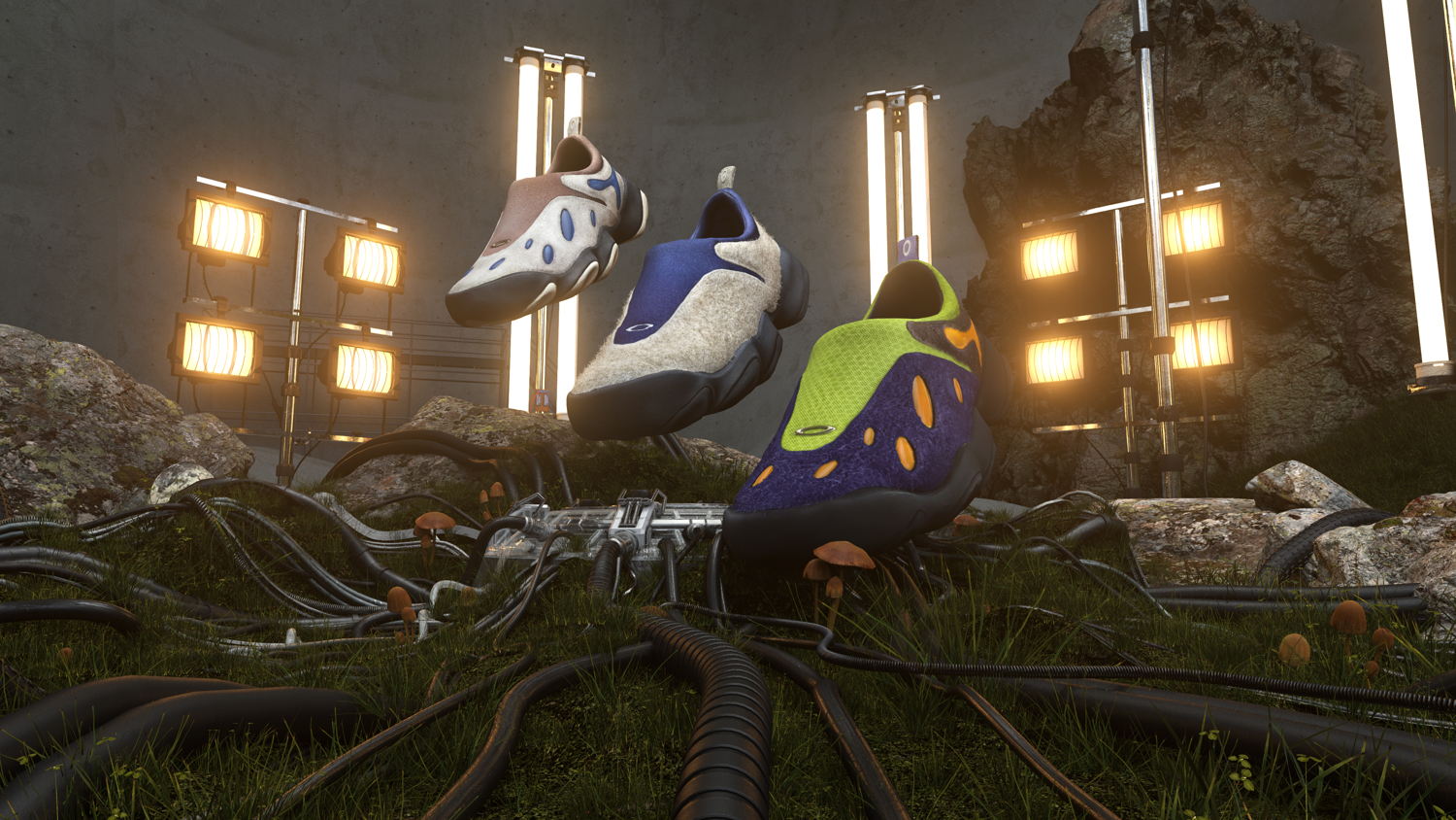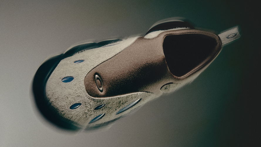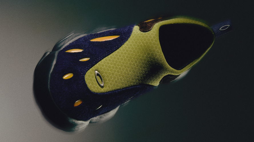 In bringing Flesh into the modern age, the Oakley Factory Team looked at all aspects of the shoe to ensure its reimagination lived up to its initial launch. Available in two colorways, Ice and Lime/Blue, the shoe features the original rubber midsole with a phylon layer, making Flesh lighter for easier day-to-day wear. The design team kept the open chamber in the sole, allowing for easier compression and cushion when walking. The upper has also been modified via applied oval gels that push the already forward-facing aesthetic even further into the future, imaginatively channeling the energy from the wearer’s last step into their next.