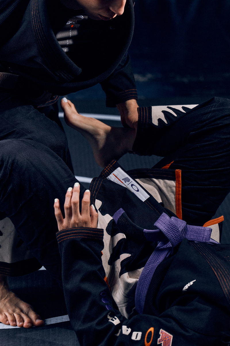 A limited edition gi heroes the dynamic martial arts collection, with co-branded patchwork and elaborate embroidery details. The collection also features a nogi set, with rashguards available in long-sleeve and short-sleeve options - a commemoration of the custom A&P x Oakley kits designed for the ADCC team. The collection is rounded out with A&P x Oakley® Eye Jacket sunglasses that feature ember-colored Prizm™ lenses and design elements that echo the collection's aesthetic. Belt-ranking colors are subtly incorporated into each piece within the collection, a design nod to the Jiu-Jitsu practice.