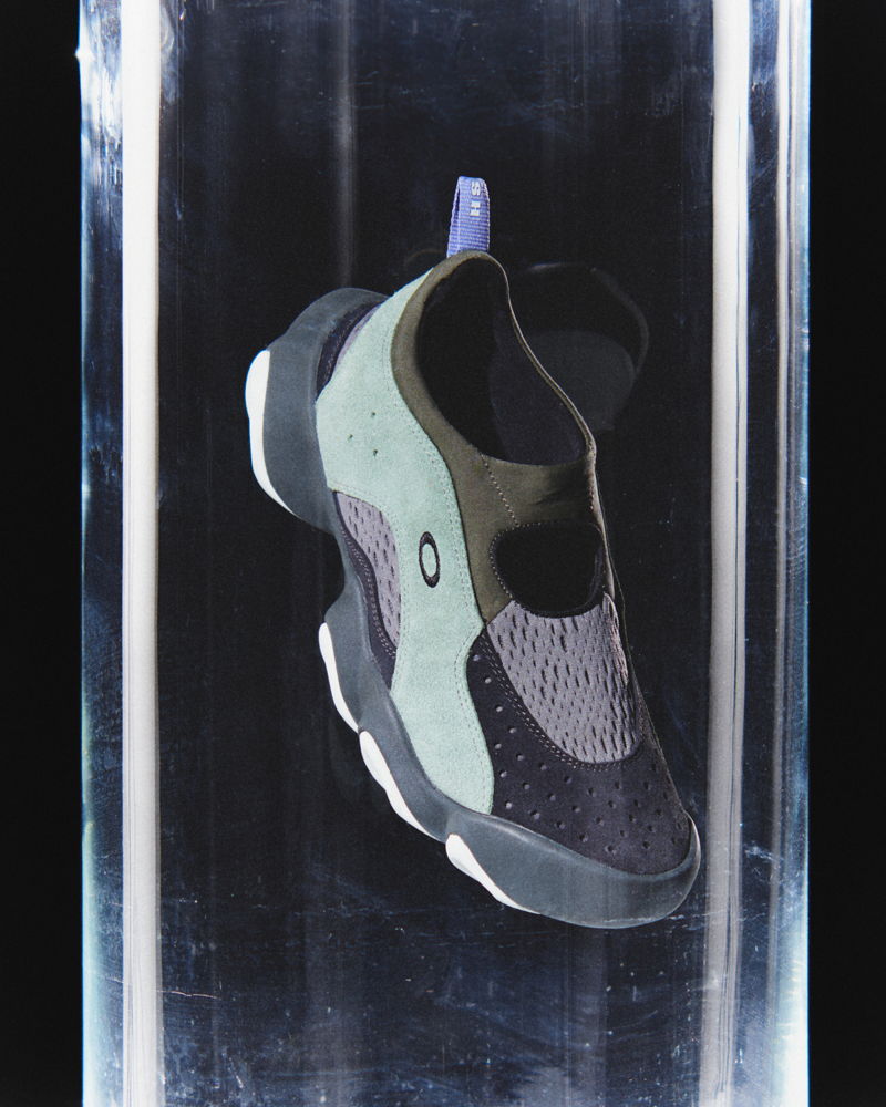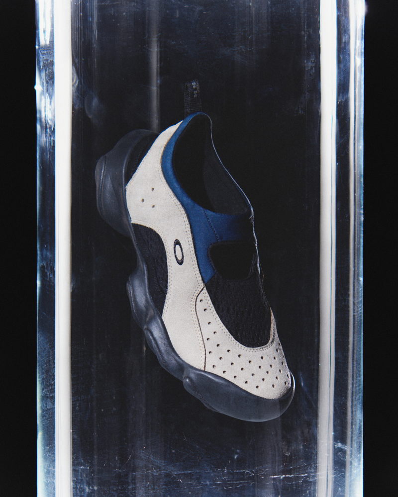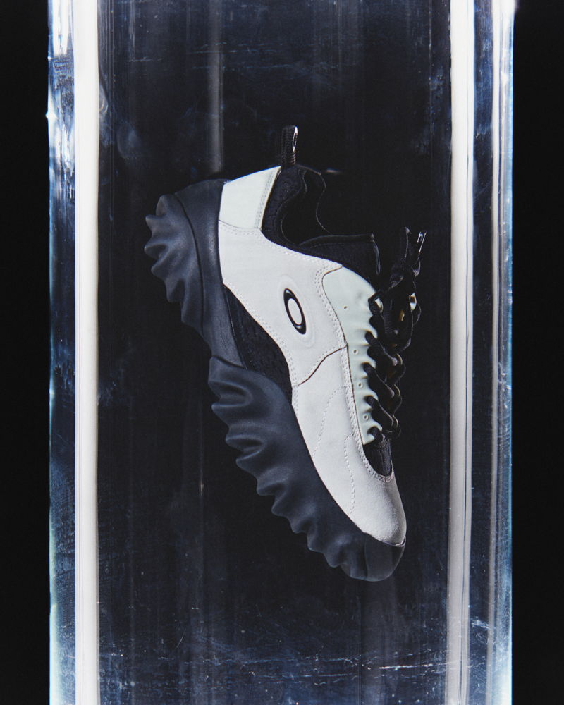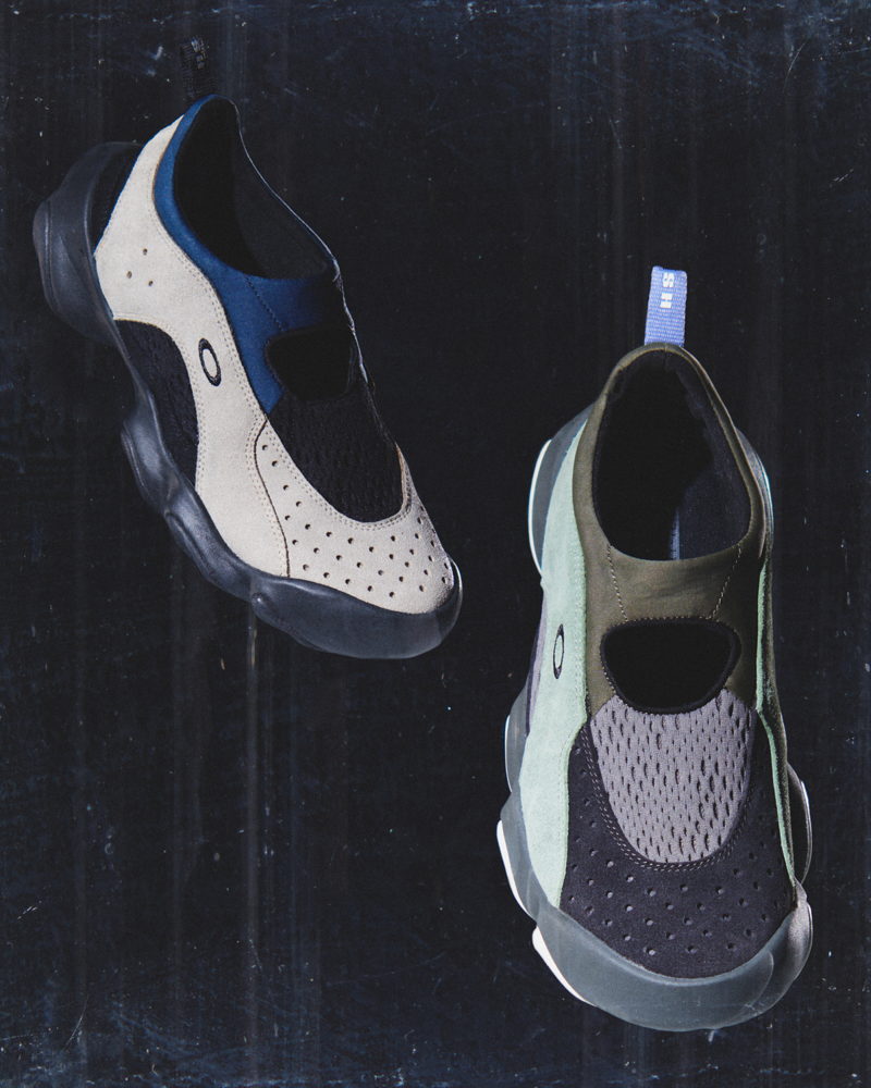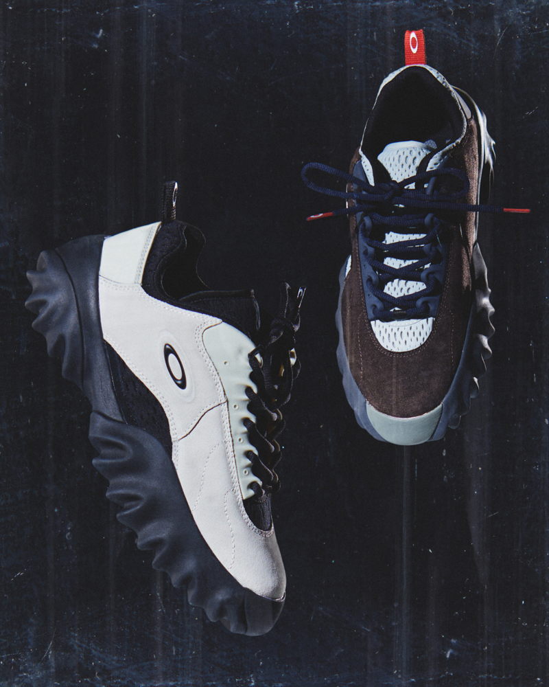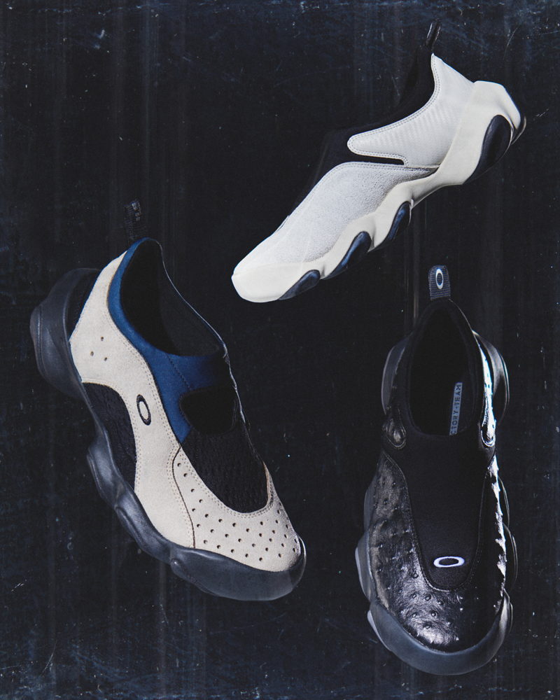 A principios de la década de los 2000, el diseño Flesh de Oakley surgió del vacío negro de la moda y vislumbró el futuro. Elegantes, cómodas y amorfas; el lanzamiento fue un catalizador para décadas de inspiración. Poco después siguieron Chop Saw; su llamativa suela y su alta funcionalidad contribuyeron a sostener un zapato robusto con personalidad mordaz. Cada diseño consiguió despertar la imaginación y expandió lo que forma y función podían lograr juntas. Los diseñadores de Brain Dead llevan mucho tiempo admirando el compromiso de Oakley por crear prendas con una duración que vaya más allá de la espiral de tendencias.