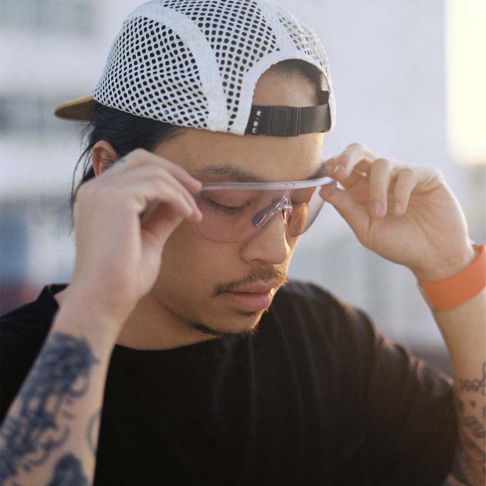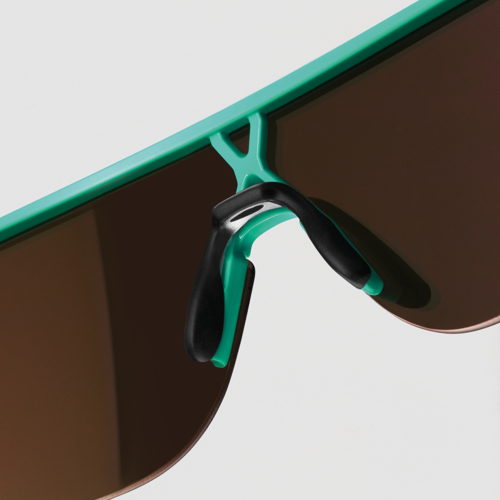 - Armação produzida em O Matter™, a geometria da armação de três pontos do Corridor foi concebida para permanecer no nariz e na parte superior das orelhas, para um ajuste confortável com menores distrações;
